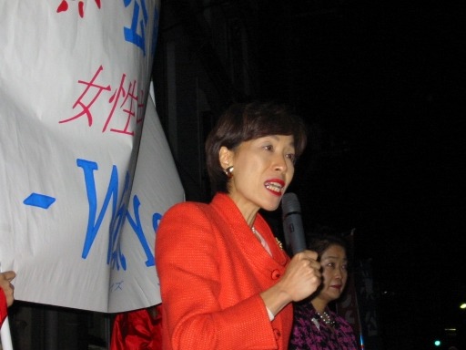 そこから、街頭に飛び出し、鶴見駅東口、西口、大口商店街、六角橋で女性キャラバン。