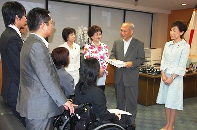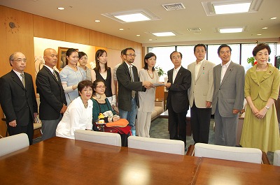 2008年8月25日2008年ookubo 遠位性ミオパチー患者会の代表と申し入れ今日は「遠位性ミオパチー患者会」の代表等とともに、舛添厚生労働大臣に申し入れを行いました。遠位性ミオパチーとは体の中心部から遠い足先や指先から筋力が低下していく進行性の筋疾患です。患者会の代表からは「研究予算の確保」 […]